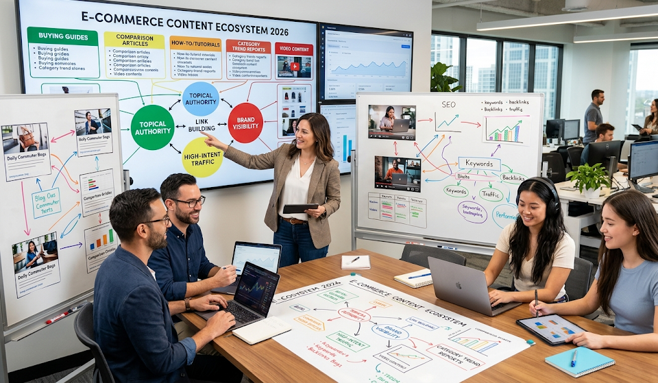E-commerce SEO in 2026 requires a content ecosystem — not just optimized product pages. A well-planned content strategy creates topical authority that benefits every page on your site.