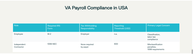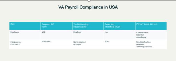 Payroll Compliance for Virtual Assistant Services in the USA: Key Legal & Reporting Differences